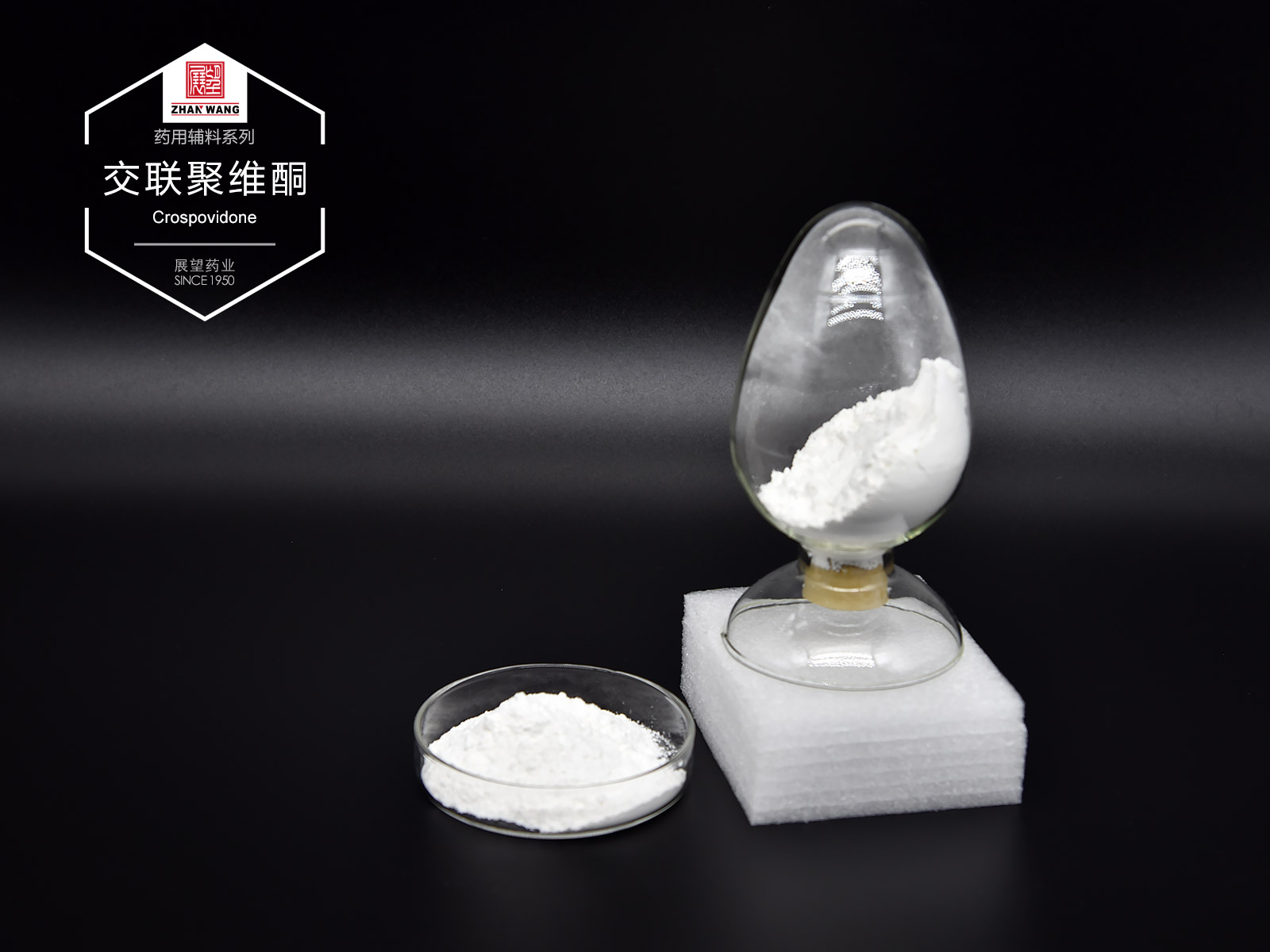 交聯(lián)聚維酮為白色至乳白色、細(xì)分散、自由流動(dòng)、幾乎無味、無臭或稍有氣味的吸濕性粉末,不溶于水、乙醇、乙醚等所有常用溶劑。